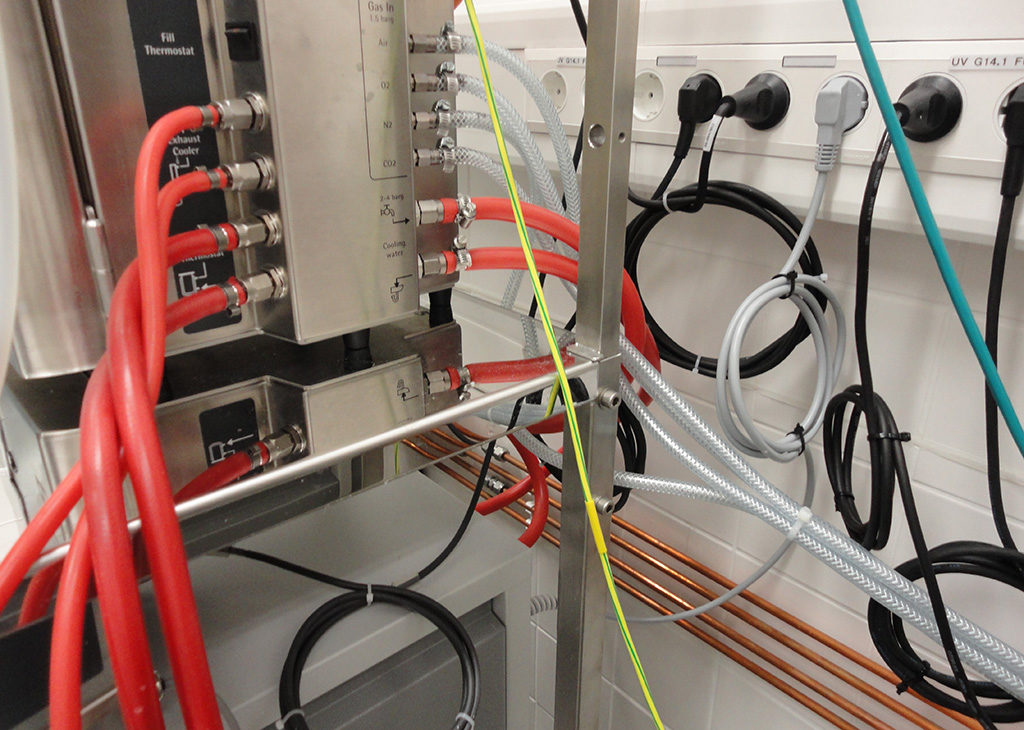 Spritzschutzgeschützter Laborbereich für Geräte allseitig geschlossen. System mit Spezialauffangwanne und Ablaufsystemen.