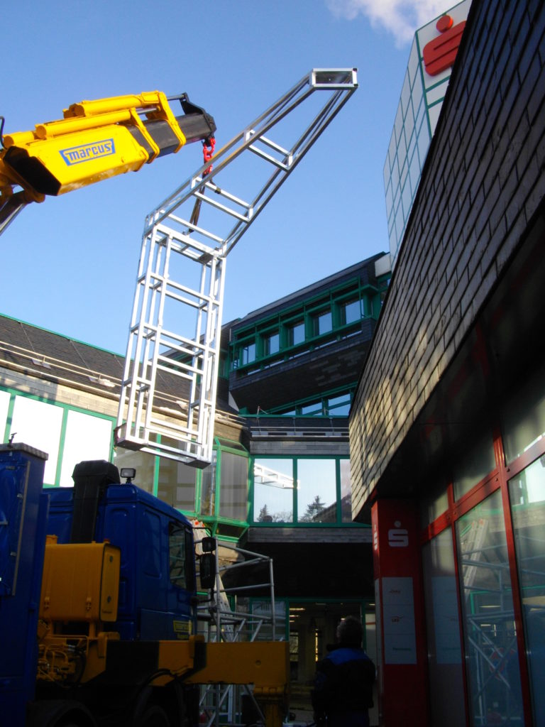 Beim umfassenden Umbau der Filiale Varresbeck der Stadtsparkasse Wuppertal fertigten wir eine breite Vielfalt an teils sicherheitssensiblen Einbau- und Architekturelementen aus Edelstahl. Dazu gehörten eine Spezialvitrine aus V2A mit magnetischer Rückwand in Kombination mit V2A-Schließfächern, Vordächer mit V2A-Edelstahlsicherungselementen, Prospekthalter aus Edelstahl, beleuchtete Anzeigensysteme, Sichtschutzblenden, Taschenablagen und Treppen aus Edelstahl.